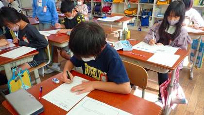 これまでに、「2の段」から「5の段」までの4つの段を学習しました。今日は、学習内容の定着を確かめるために、プリント学習に取り組んでいます。覚えたての九九をつかって、一生懸命問題を解いていました。