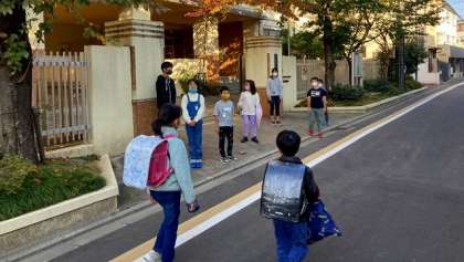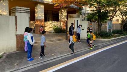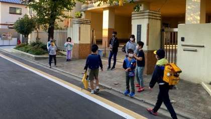 今日は、たてわりあいさつ運動の日です。13・14グループの子どもたちが、朝からあいさつをがんばりました。朝の冷え込みはそれほどでもありませんでしたが、桜の葉は赤や黄色に色づきはじめ、秋が深まっていることを感じますね。