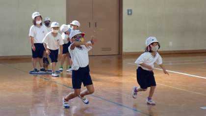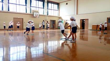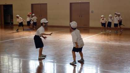 今日は、「どんじゃんけん」をして遊びました。なかなか相手の陣地までたどり着けませんでしたが、勝ち負けにこだわらず、みんなで楽しく活動していました。