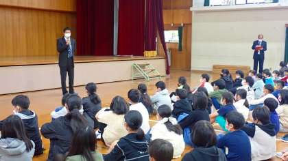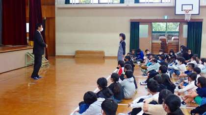 警察署の方のお話の中では、校内にいるどんな人を「不審者」だと思うかということを子どもたちに聞かれました。子どもたちは、「知らない顔の人」「名札をつけていない人」などと答えていました。