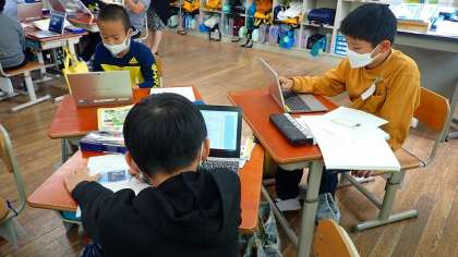 今日は、昔と今の道具の変化を調べることを通して、生活の変化について考える学習に取り組みました。はじめに、グループに分かれ、教科書や図書、タブレットPCなどを活用して、「ご飯を炊く道具」「電話するときに使う道具」「食べ物を冷やしておく道具」について調べました。