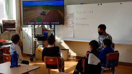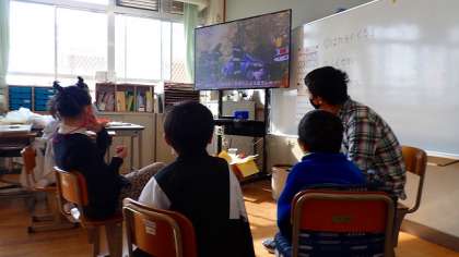 動画を見ながら、歌に合わせて体を動かしたり歌ったりして楽しんでいます。