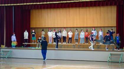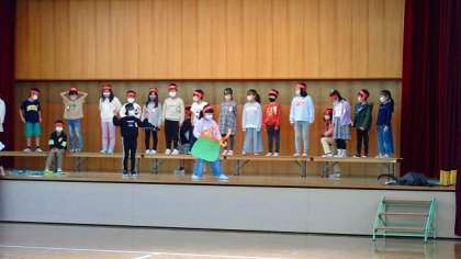 2年生は、学習発表会に向けた練習に取り組んでいます。