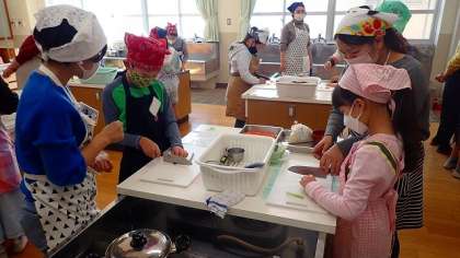 グループに分かれて「おから煮」づくりを始めました。