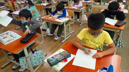 1年生は、生活科の「みんなの にこにこ だいさくせん」の学習をしています。