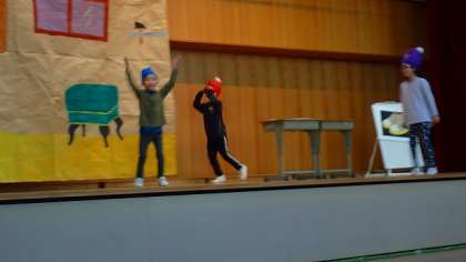 コスモス学級の5人の子どもたちの個性が輝く、とても楽しい劇でした。5人のがんばりを見ていた全校のみんなも、とてもあたたかい気持ちになることができました。