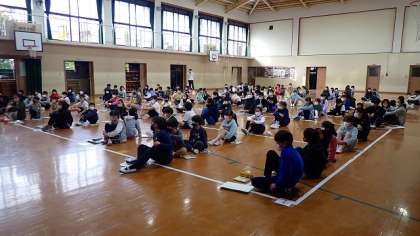 今日の1校時に、体育館で「たてわりタイム」を行いました。
