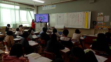 5年生は、国語の「グラフや表を用いて書こう」の学習をしています。