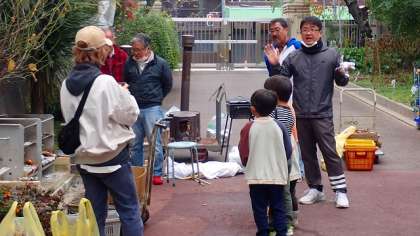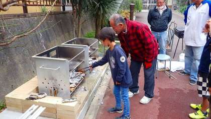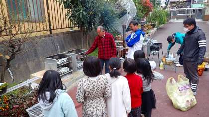 運動場で遊んでいるうちに、焼いもができあがりました。1年生から順に、どんな風にして焼いもづくりをしてくださっているのかを見せていただいた後、一人ひとつずつ焼いもをいただきました。