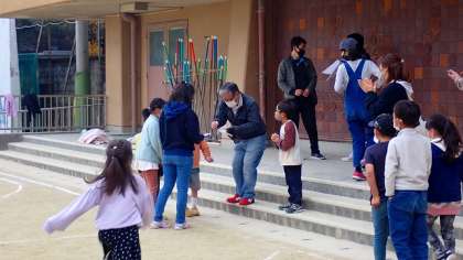 おいもをいただいた後には、「○×クイズ」大会を開いてくださいました。最後まで残った子には、素敵な賞品がありました。
