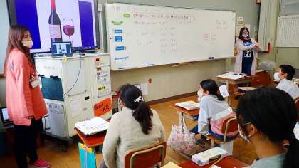 5年生は、外国語の“I want to go to Italy.”の学習をしています。