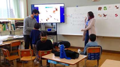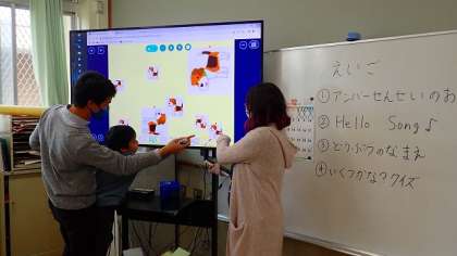 コスモス学級では、ALTの先生と一緒に外国語活動の学習をしています。