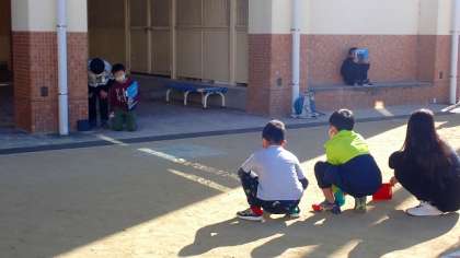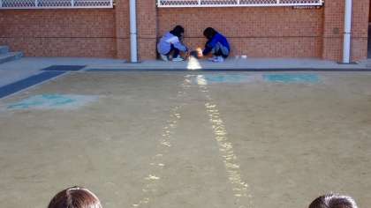 鏡で跳ね返した太陽の光を集めると、明るさやあたたかさがどのようになるのかを確かめています。光が集まると、その部分がさらに明るくなる様子や、触った時にあたたかく感じることを確かめることができました。