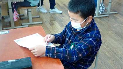 学習した漢字をしっかり覚えることができているでしょうか。自分の書いた答えを、きちんと見直しすることもがんばっていました。