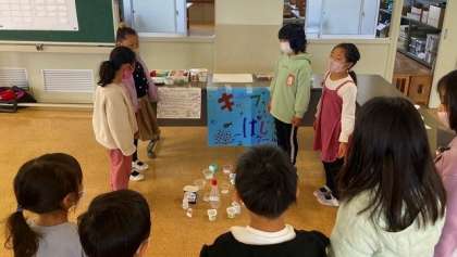 2年生は、乾隆幼稚園の年長組さんを招待して、「にこにこフェスティバル」を開きました。