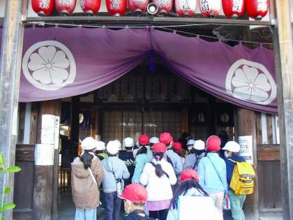 学校を出て、千本通商店街を北に、その後芦山寺通を東に進んで住宅街に入りました。途中、商店の様子を見させていただいたり、千本閻魔堂を見学させていただいたりしました。