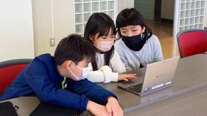 4年生は、総合的な学習の時間の取組で、学習したことを下京渉成小学校の4年生とリモートで交流しました。