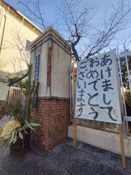 ※写真の門松・ジャンボ年賀状は、『お正月準備DA乾隆』で6年生が作ってくれたものです。