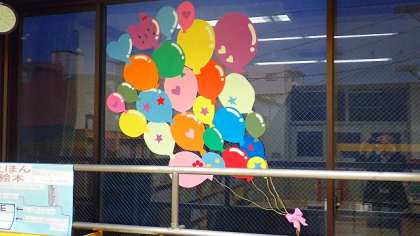 今日の放課後、図書ボランティアのみなさんが図書室の飾りをつくってくださいました。
