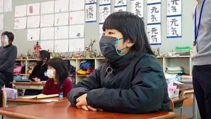 4年生は、交流学級の4年い組の友達と一緒に、総合的な学習の時間の学習をしました。ゲストティーチャーの先生のお話を、真剣な表情で聞いていました。