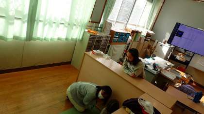 コスモス学級の教室では、音楽の学習で「わらべうた」に親しんでいます。「かくれんぼ」を歌い、歌に合わせて教室でかくれんぼ遊びをしました。