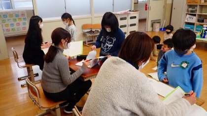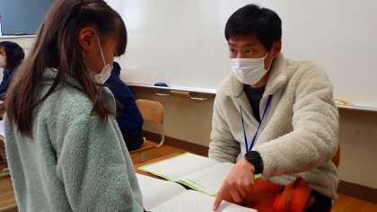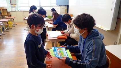 今日は、1年生がノートを見てもらいました。1年生にとっては、はじめての「あしあと検定」です。ちょっぴり緊張しながら、担当の先生にノートを見てもらいました。