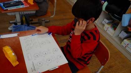 時計の読み方についての復習プリントに挑戦しました。時計は、なかなかすぐに読めるようにはなりません。普段の生活の中で時計を読んでいくことが必要ですので、ご家庭でも意識的に時計を読む機会をつくってくださると幸いです。