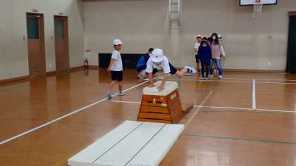 3年生は、体育の「とび箱運動」の学習をしています。