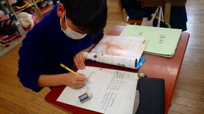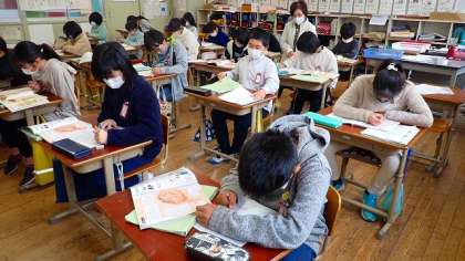 人の胎児が、母親の子宮の中でどのように成長していくのかについて調べ、まとめたり、その中で新たに疑問に思ったことを書き出したりしています。「母親のおなかの中で胎児は息をしていないのに、どうして生きていられるのだろう?」という疑問をもった子もいました。これからの学習で解決していけるとよいですね。