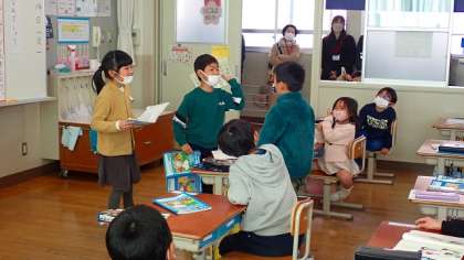 1年生は、国語の「これは、なんでしょう」の学習をしました。ペアで一緒に考えたスリー品とクイズを交流する、「これはなんでしょうクイズ大会」を行いました。