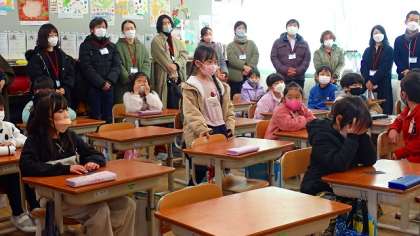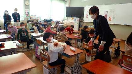 赤ちゃんの産声を聞いたり、赤ちゃんの人形を順に抱いたりして、お母さんやお父さんがどんな気持ちになったのかを想像しました。赤ちゃんを抱っこするときには、みんなとても大切に抱いていました。