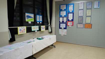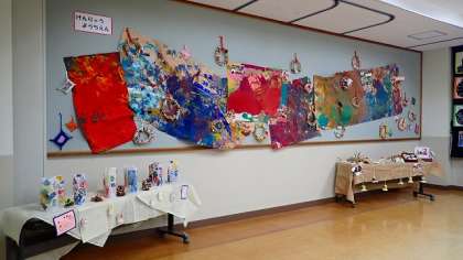 本校児童の作品のほかに、乾隆校区に住んでいて総合支援学校に通っている友達や、乾隆幼稚園の園児のみなさんの作品も展示されています。