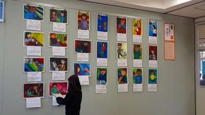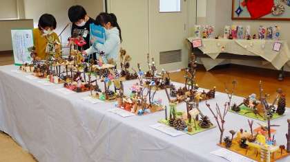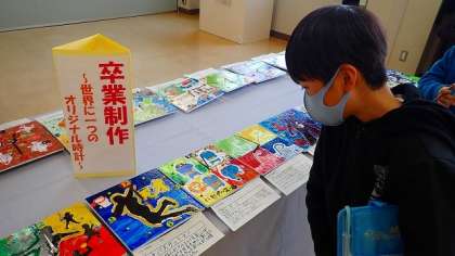 鑑賞に来ていた3年生が、それぞれの作品のよさをじっくり鑑賞しています。自分たちが1・2年生のときに作ったものを懐かしく鑑賞したり、4年生以上の作品を興味深そうに見つめたりしていました。
