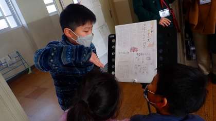 6つの場に分かれて、発表をしました。保護者の方も、子どもたちの発表を興味をもって聞いてくださっていました。