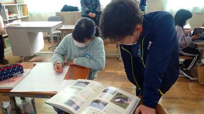 「大雨」「津波」などの災害の中で自分で大きなテーマを決めて、グループで調べ学習をします。調べて分かったことをカードにまとめていきます。