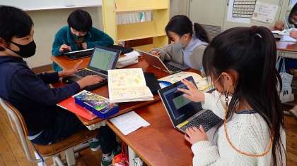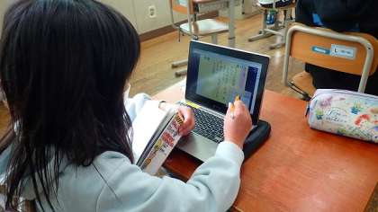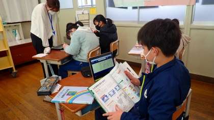 前の時間には、グループで一つの災害について調べましたが、今日は、一人一人でより詳しく調べる学習を進めています。この後は、調べたことをもとに自分の考えを伝える文章を書いていきます。