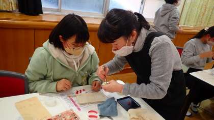 6年生 学習の様子「つまみ細工体験(2)」(2月17日)