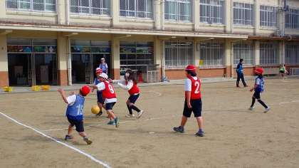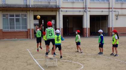 3年生は、体育の「ポートボール」の学習をしています。