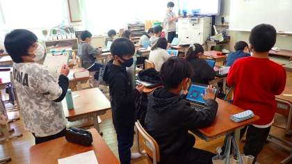 今日は、3年生の子どもたちがクラブ活動の様子を見学する日です。1時間の間に6つのクラブを順に回って、どんな様子で活動しているのかを見学します。