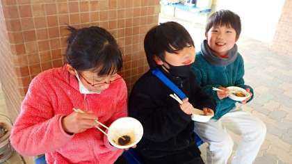 七輪を使って焼いたおもちは格別の味でした。最後の感想でも、「家で食べるおもちより、七輪で焼いたお持ちの方がおいしかった。」や、「地域の方と一緒に食べるおもちはとてもおいしかった。」などの感想が聞かれました。