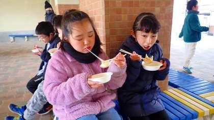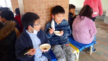 子どもたちは、七輪を使う経験を通して、昔の道具のよさや工夫などを感じることができました。お忙しい中、また寒い中子どもたちのためにご協力いただいた地域の皆さま、本当にありがとうございました。