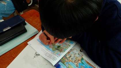 水や空気などは、地球上の動物や植物とどのようにつながっているのかについて考えました。これまでに学習したことふり返り、水が地球でどのようにめぐっているのか、空気が呼吸や光合成などを通してどのように生物とかかわっているのか、また、「食物連鎖」で生物同士がどのようにつながっているのかを図にまとめました。