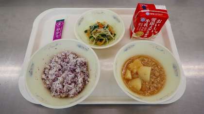「じゃがいものそぼろ煮」は、じゃがいもやたまねぎ、糸こんにゃくを、鶏そぼろと一緒にいただきました。とろみがついているので、具材にそぼろがよくからみ、おいしくいただきました。じゃがいもは、形がしっかりしているうえに中までほくほくで、食べ応えも抜群でした。