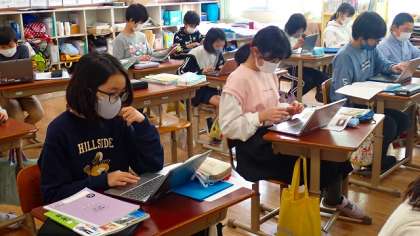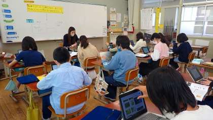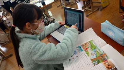 これまでに学習してきたことをふり返り、単元のまとめとして「森林のはたらき」と「わたしたちの生活にどのようなかかわりがあるのか」について、ロイロノートスクールを活用して、キャッチコピーとその説明をつつくりました。できたものはみんなで共有し、互いに読み合いました。