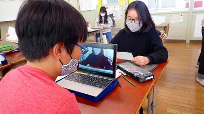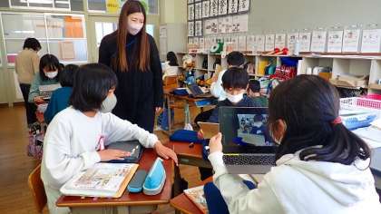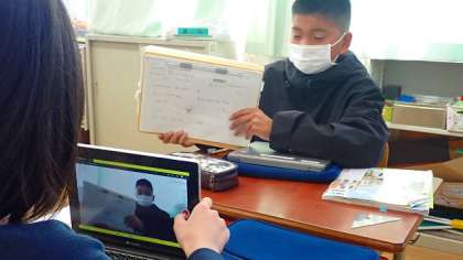 5年生は、外国語科の“My hero is my brother.”の学習をしています。