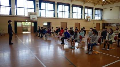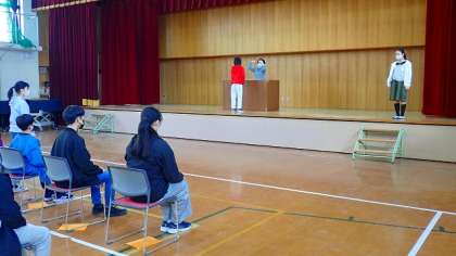 はじめて、入退場と証書授与の練習をして、大まかな動きを確かめました。少し緊張した表情でしたが、よい雰囲気で練習をすることができました。