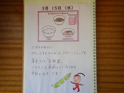 「さばのかわり煮」は、みそ味のさばにトウバンジャンの辛みが少し入って、とても深い味わいです。ごはんとよく合う献立で、ごはんと一緒においしくいただきました。また、「厚あげ野菜のあんかけ」も、ごはんとの相性抜群です。ふわふわの厚あげを、野菜たっぷりのあんかけでおいしくいただきました。