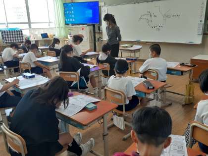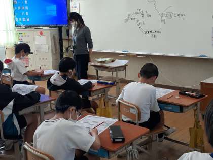 今日は、地図の見方や方位の確認をしました。乾隆小学校は、どのあたりにあるのか、地図を見て確認したり、方位を確認したりしました。