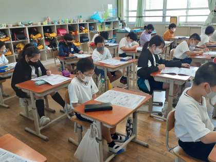 3年生は、社会の復習に取り組んでいます。