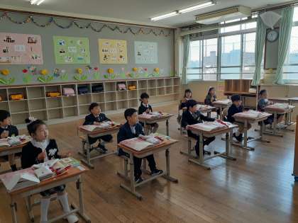 教室では、担任の先生からのお話を聞きました。先生のお名前はちゃんとおぼえられたかな?